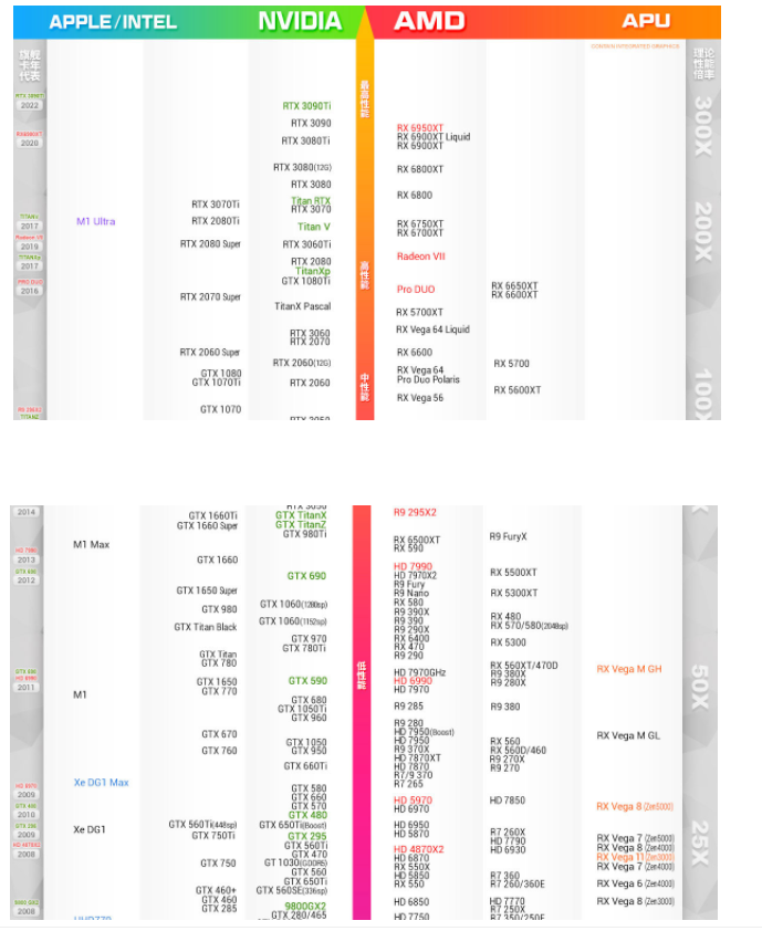 首先看看大佬秋刀鱼半藏整理的显卡性能天梯图