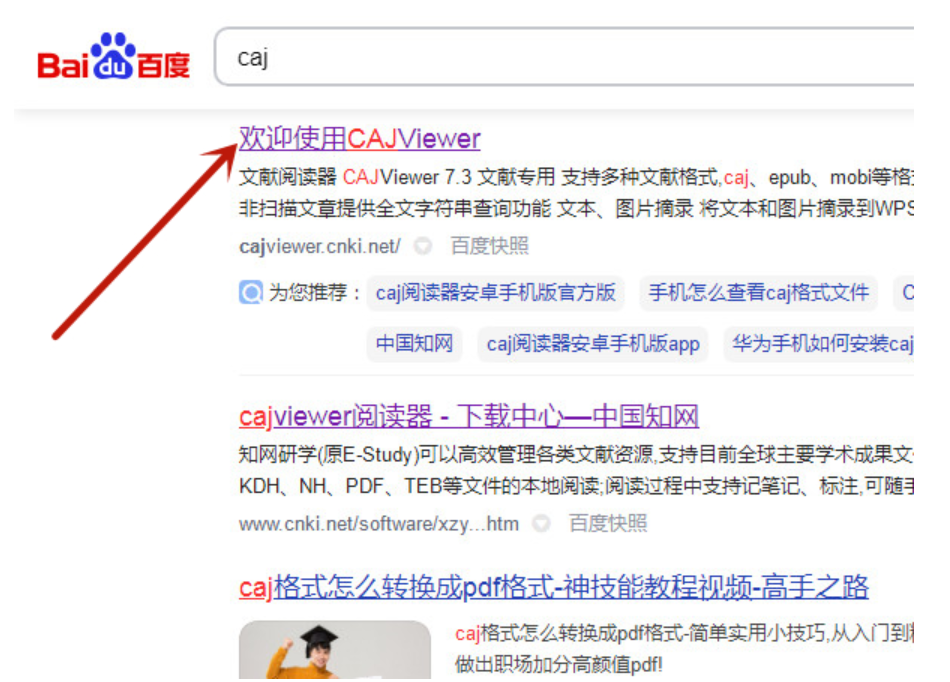 第一步:百度搜索caj并进入。