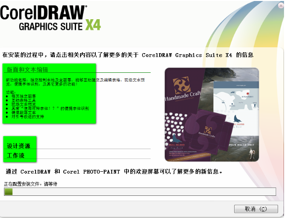 9.进入到CorelDraw X4的安装进度条界面,耐心等待安装完成。