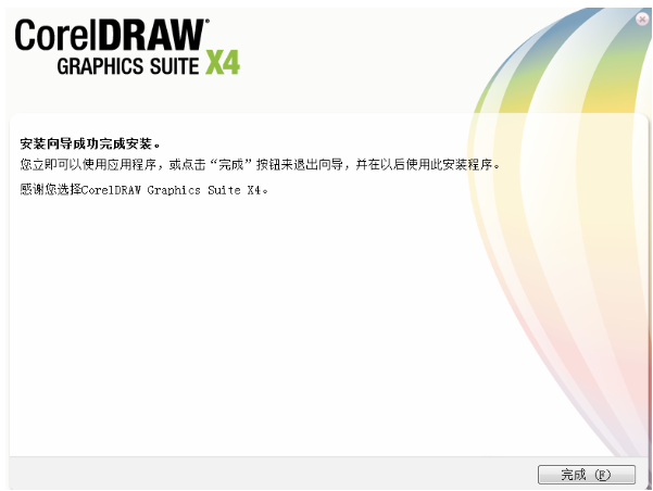 10.最后,CorelDraw X4安装完成,我们单击【完成】按钮即可。