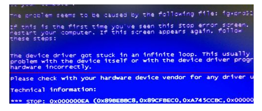 2.蓝屏代码:0×000000EA