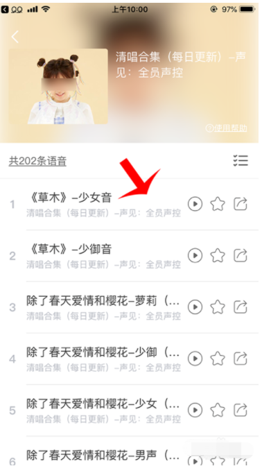 3、选择喜爱的语音包打开,点击喜爱的选项空白位置。