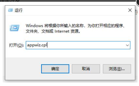 3、结束程序之后,同时按下键盘“win+r”,输入“appwiz.cpl”,点击确定。