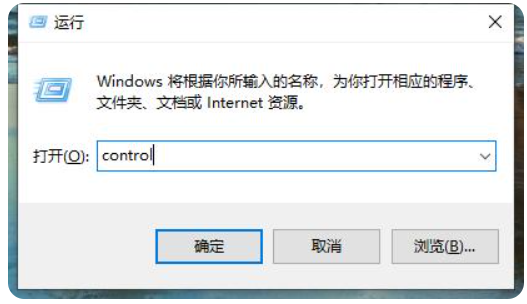 2、输入control,点击确定。