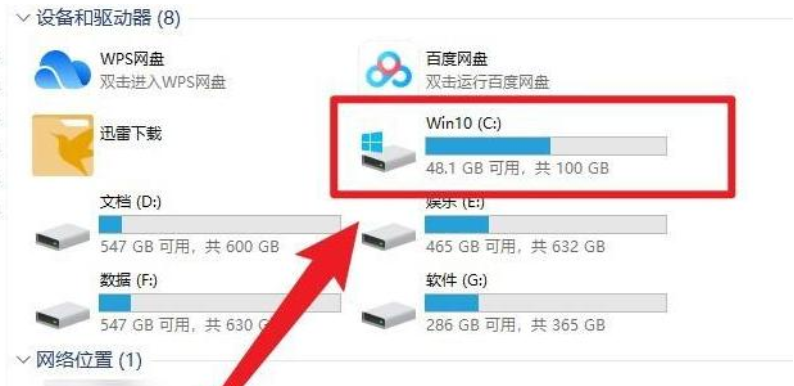 2、双击打开c盘。