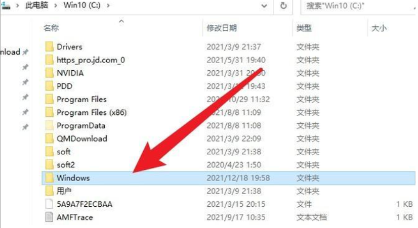 3、然后找到windows文件夹打开。