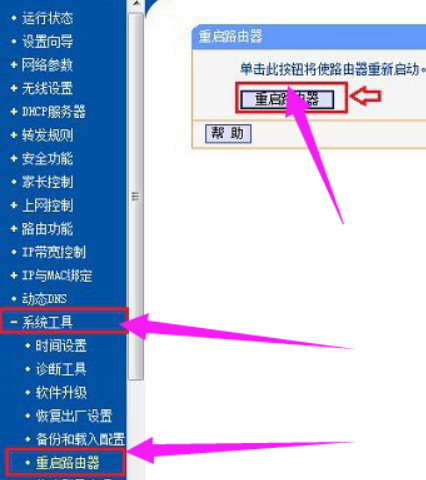 6、最后在“系统工具”里面的“重启路由器”“进行重启。