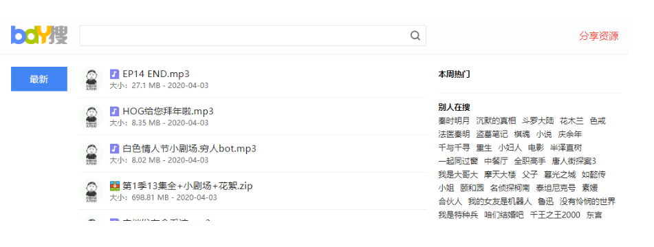 第五、bdy搜,这个资源有限,网盘搜索只抓取了资源的链接索引更新更新网友的主动分享链接,但保存不了资源。
