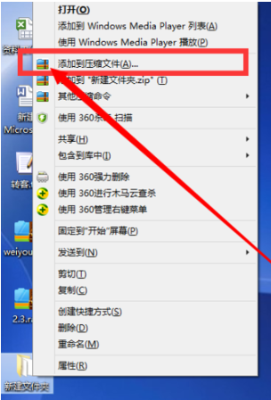 1、鼠标右键点击需要压缩的文件,在菜单栏中点击添加至压缩文件选项。