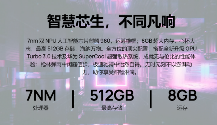 核心硬件配置上,华为p30和p30pro基本没有区别。P30系列全线搭载麒麟980处理器,这款处理器是华为第一款7nm制程处理器,麒麟980内含69亿颗晶体管,首发Cortex-A76架构,采用两颗主频2.6GHz的高性能大核心+两颗主频1.9GHz的高能效大核+四颗主频1.8GHz的高性能小核的“2+2+4”设计。麒麟980相较上一代处理器在综合表现上提升75%,GPU性能提升46%,并且在能效上提升58%,性能方面非常强大。