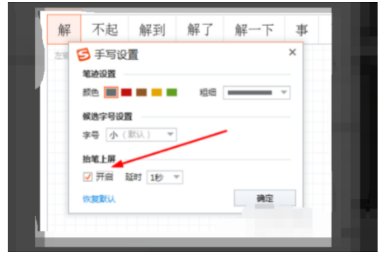 在手写设置选项中,勾选开启抬笔上屏即可。