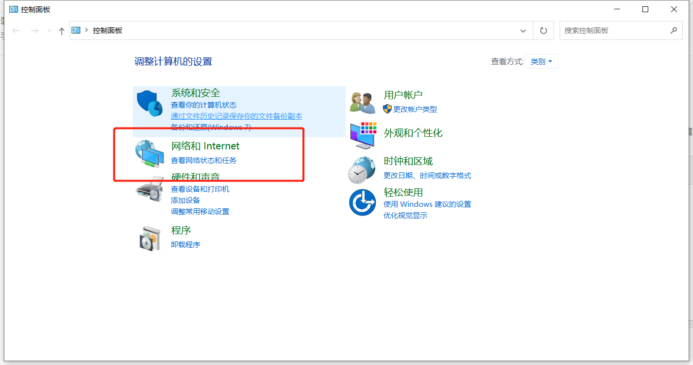 1、首先打开开始菜单,找到“控制面板“”点击进去,再找到“网络和Internet”。