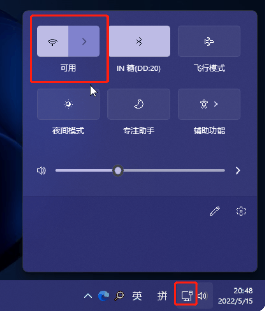 3、点击右下角的网络图标,点击进入“wifi列表"。