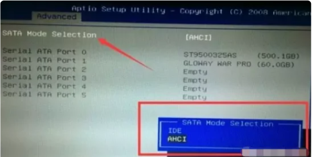 3、找到“SATA Mode”的设置,找到后按回车,然后选择IDE选项。