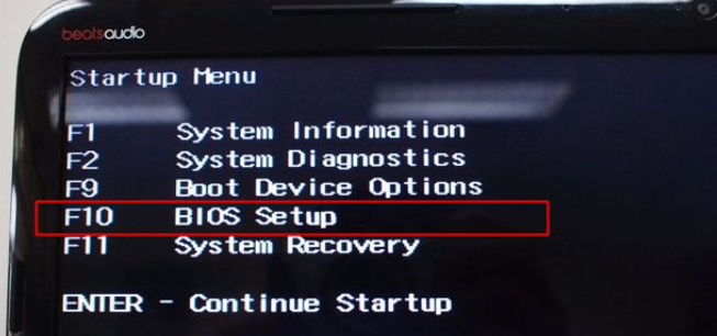 2、接着来到启动菜单选项,选项F10 BIOS Setup就是BIOS设置,此时再次按下F10键就可以进入BIOS。