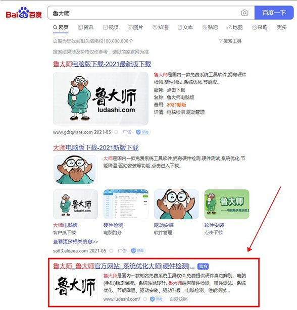 1、打开浏览器,在搜索框中输入鲁大师,搜索进入鲁大师的官网。