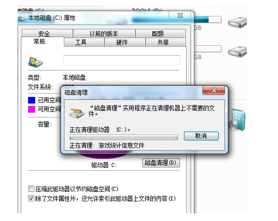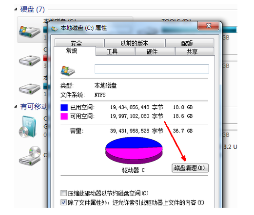 7、也可以在属性页中选中压缩驱动器来节约磁盘空间,通过这种方法可以一定程度上节约空间。