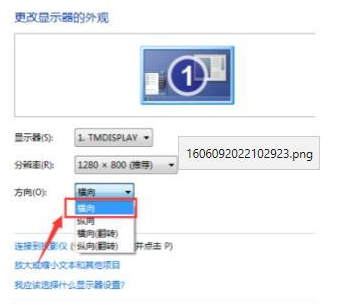 4、进入更改显示器的外观界面中找到“方向”设置为横向”点击确定即可。