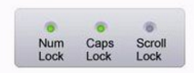 下图是指示区,方便人知道键盘处于什么状态,CapsLock(字母大键盘小写锁定)、NumLock(数字小键盘锁定)、ScrollLock(滚动锁定键)三个指示灯。