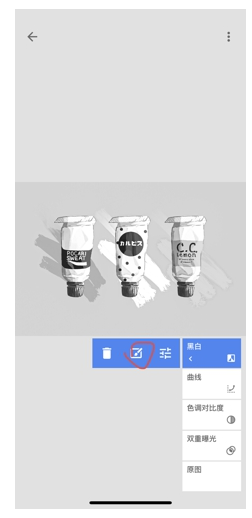 5.如图所示,在此界面点击右下角显示的“黑白”后,,点击第二个带笔刷的图标,进入蒙版界面。