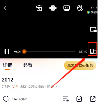 1、手机上打开腾讯视频app,进入播放页面,点击横屏播放。