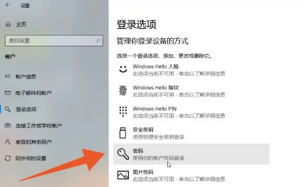 2、找到并点击帐户,切换界面后在左侧功能栏里点击登录选项。