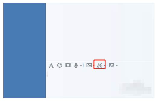 登录QQ后,打开一个聊天对话框,点击图示截图工具或者Ctrl+Alt+A快捷键即可唤出截图工具。