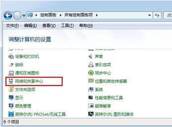 2、选择网络与中心中心。