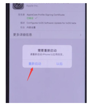 3、点击底部弹出的安装,确定重新启动手机即可。