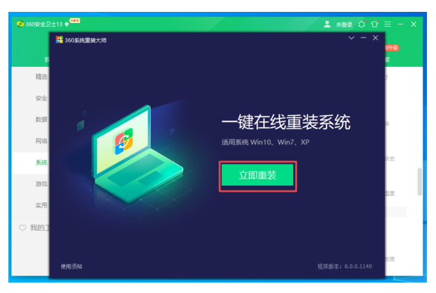 4、点击窗口中的【立即重装】。