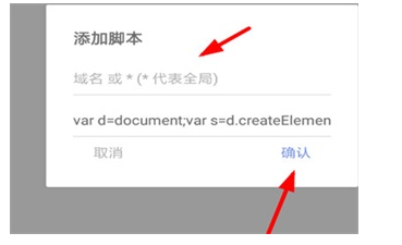 步骤三:这时我们先添加输入脚本的域名,单击确认就可以成功安装脚本。