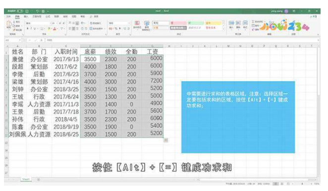 总结:excel表格可以通过快捷键或者使用工具进行求和。