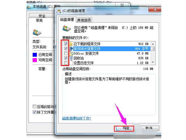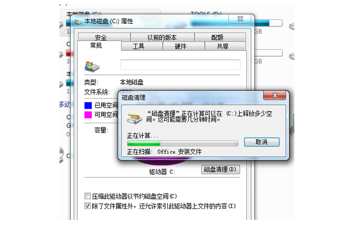 6、如果电脑的磁盘空间太小,还可以在属性页中选中压缩驱动器来节约磁盘空间,通过这种途径可以一定程度上节约空间。