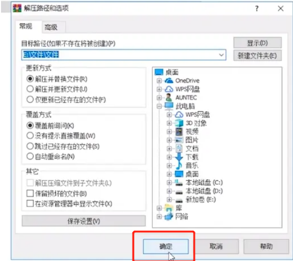 3、我们可以选择将解压出来的文件放在哪里以及解压的方式。