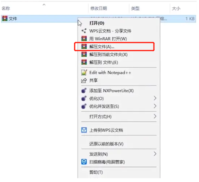 2.鼠标右键-选择“解压文件”;