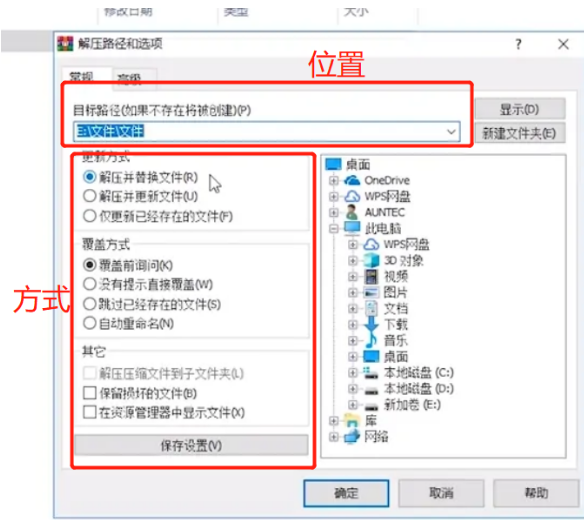 3.选择解压方式和存放位置;