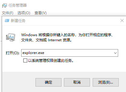 4.此时在窗口中输入explorer.exe,点击确定桌面图标就能显示啦。