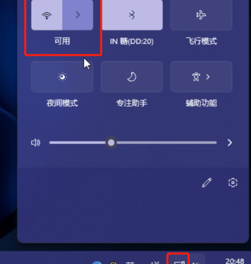 3、然后点击右下角的网络图标,点击进入“wifi列表"。