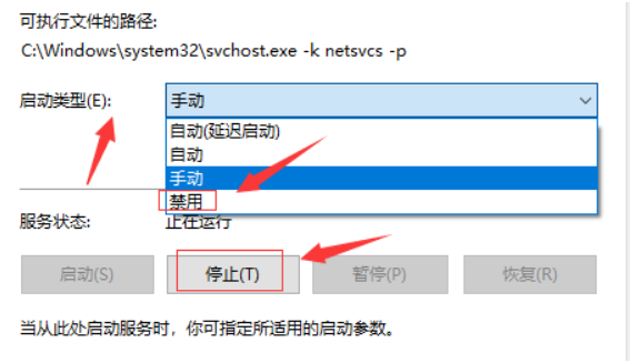 3.把启动类型改为“已禁用”,单击服务状态下的“停止”按钮;