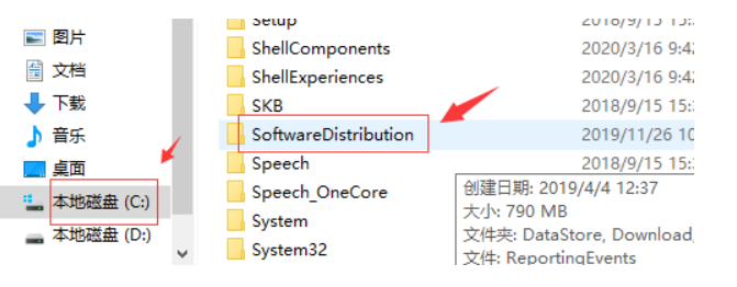 4.把C:\Windows\SoftwareDistribution文件夹名字更改为SDfolder;
