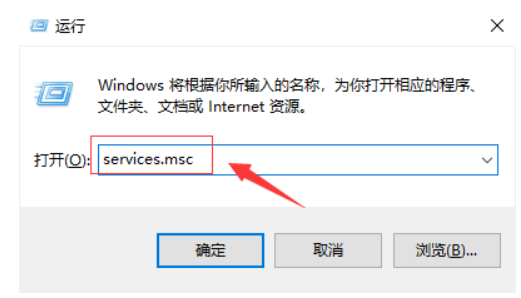 1.首先打开运行命令窗口,输入services.msc,然后点击确定;