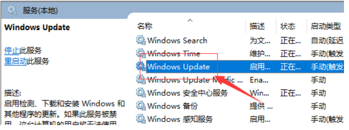 2.找到“Windows Update”服务,双击打开;