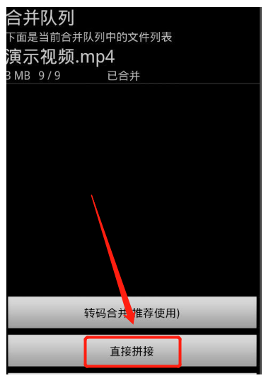 4、最后点击“直接拼接”,等待软件将它们拼接到一起后,UC浏览器缓存的零碎视频即可转换成完整的mp4了。