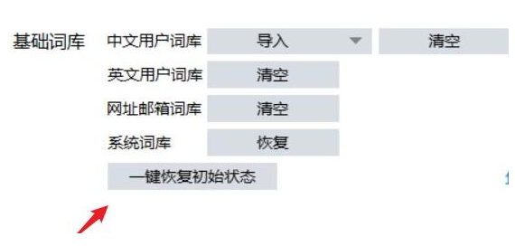3、在其中单击“一键恢复初始状态”就可以删除输入法记忆啦。