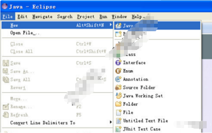 4、此时创建一个项目:选择file--New--java Project。