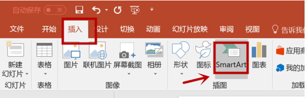 1、在ppt文档中,选择“插入”下方的“smartart”。