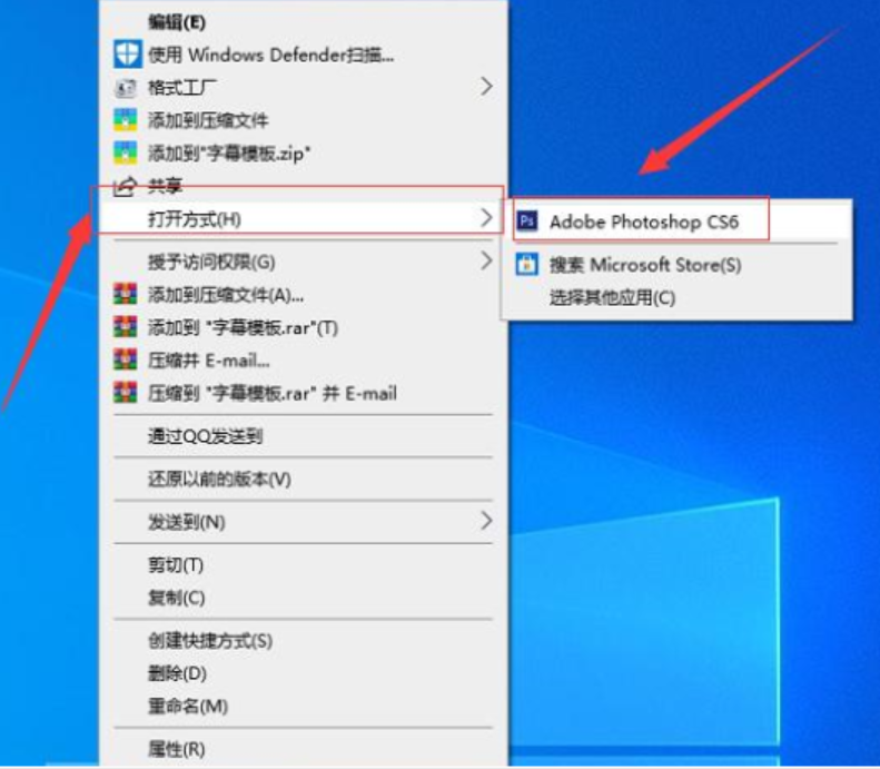 2、选择“打开方式”,再选择列表中的Photoshoop打开,就可以查看想要的文件啦。