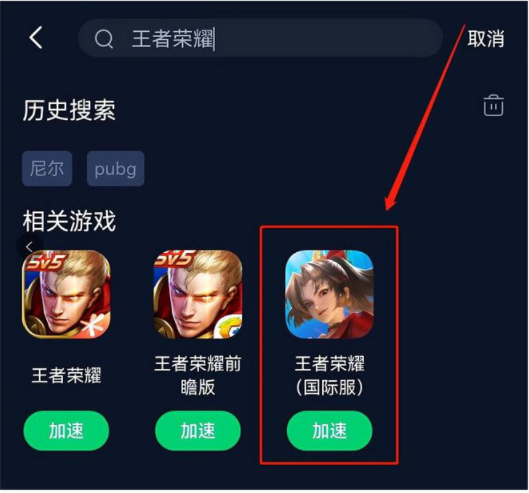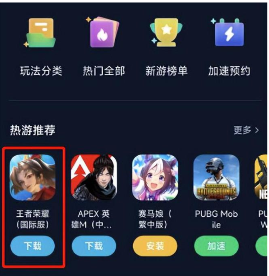 2.我们搜索“王者荣耀”,找到“王者荣耀国际服”的图标,点击下载安装游戏即可。
