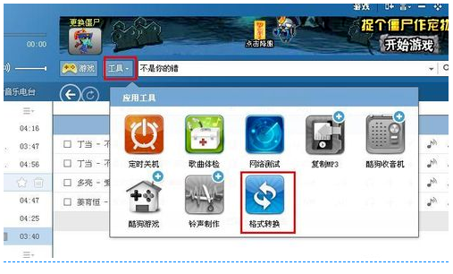 4、鼠标点击工具旁边的下拉菜单,选择格式转换即可。