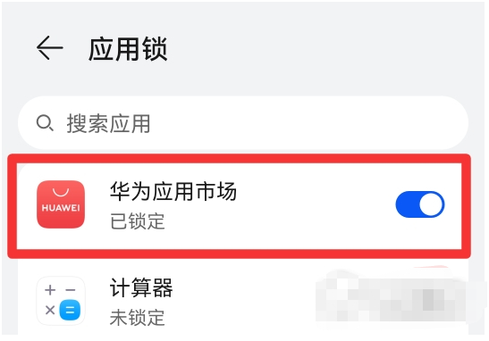 4、在开启应用锁之后,我们将华为应用市场开启应用锁就可以啦。